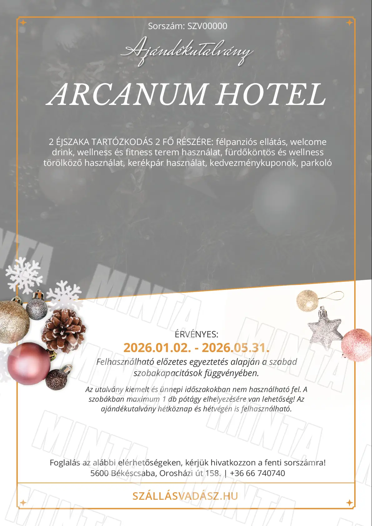 Az utalvány kiemelt és ünnepi időszakokban nem használható fel.