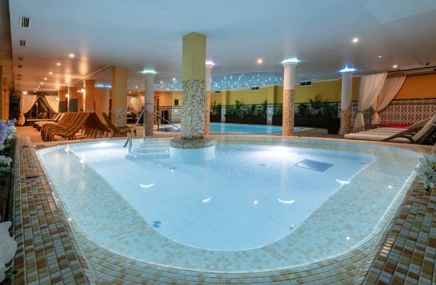 - Wellness használat: finnszaunák és fényterápiás infraszauna, a jégkása kút, a dézsazuhany, a sóbarlang, a beltéri élmény-, és úszómedence használata