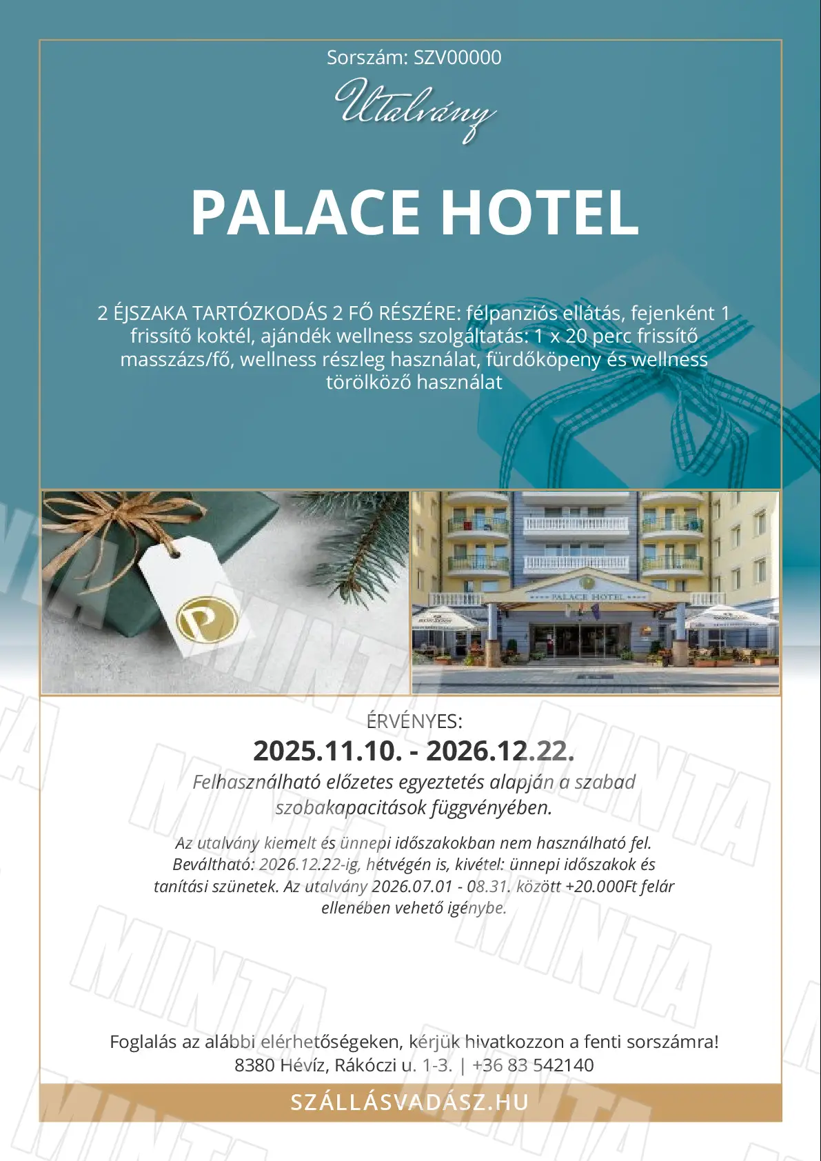 Az utalvány kiemelt és ünnepi időszakokban nem használható fel.