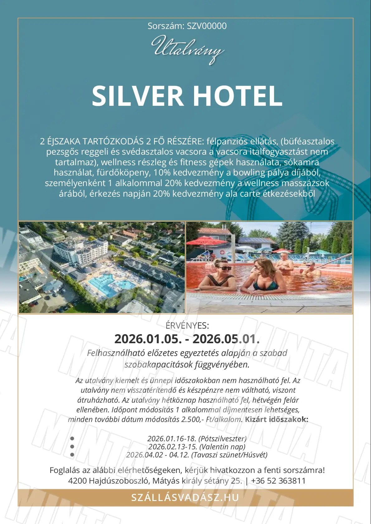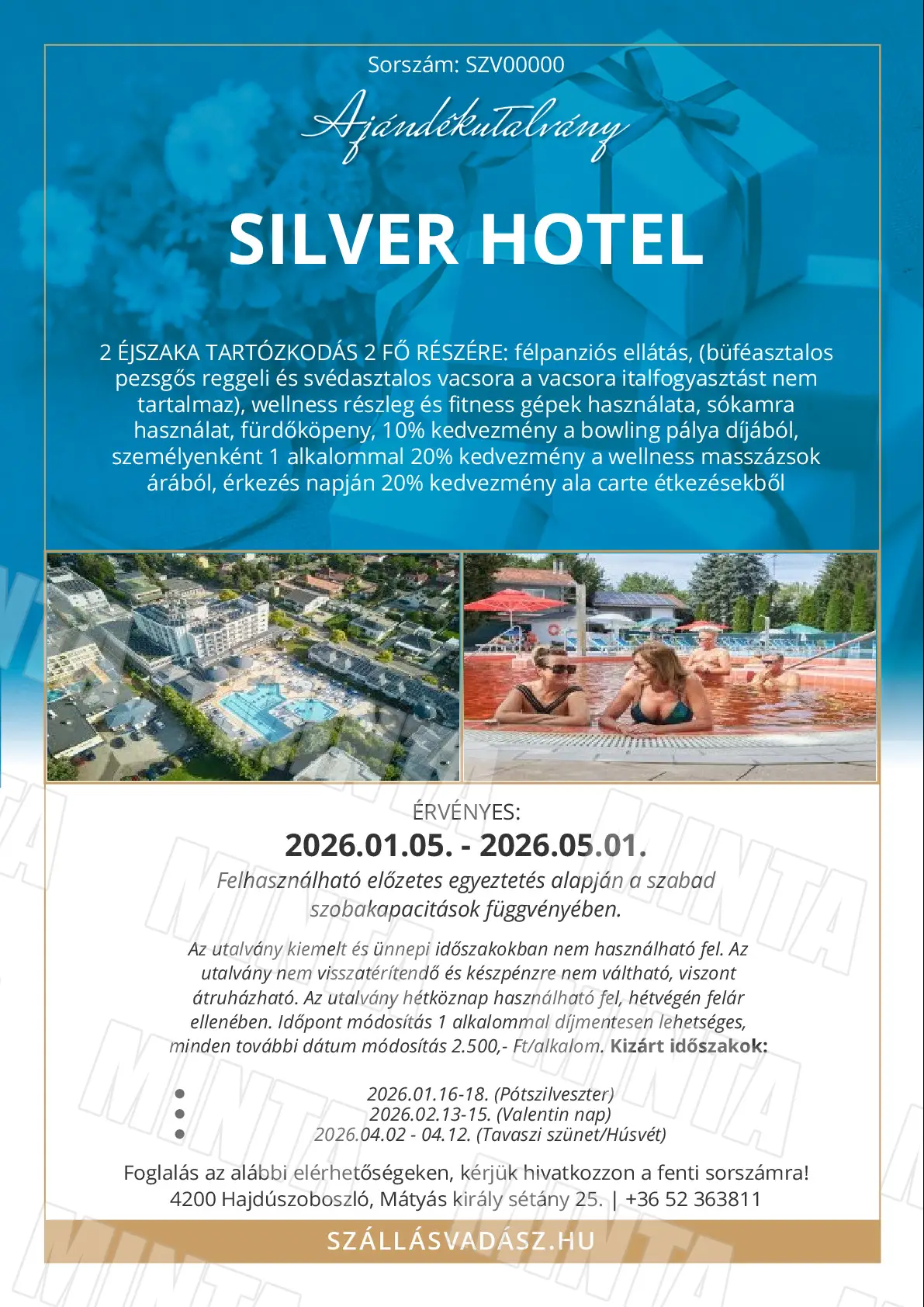 Az utalvány kiemelt és ünnepi időszakokban nem használható fel.