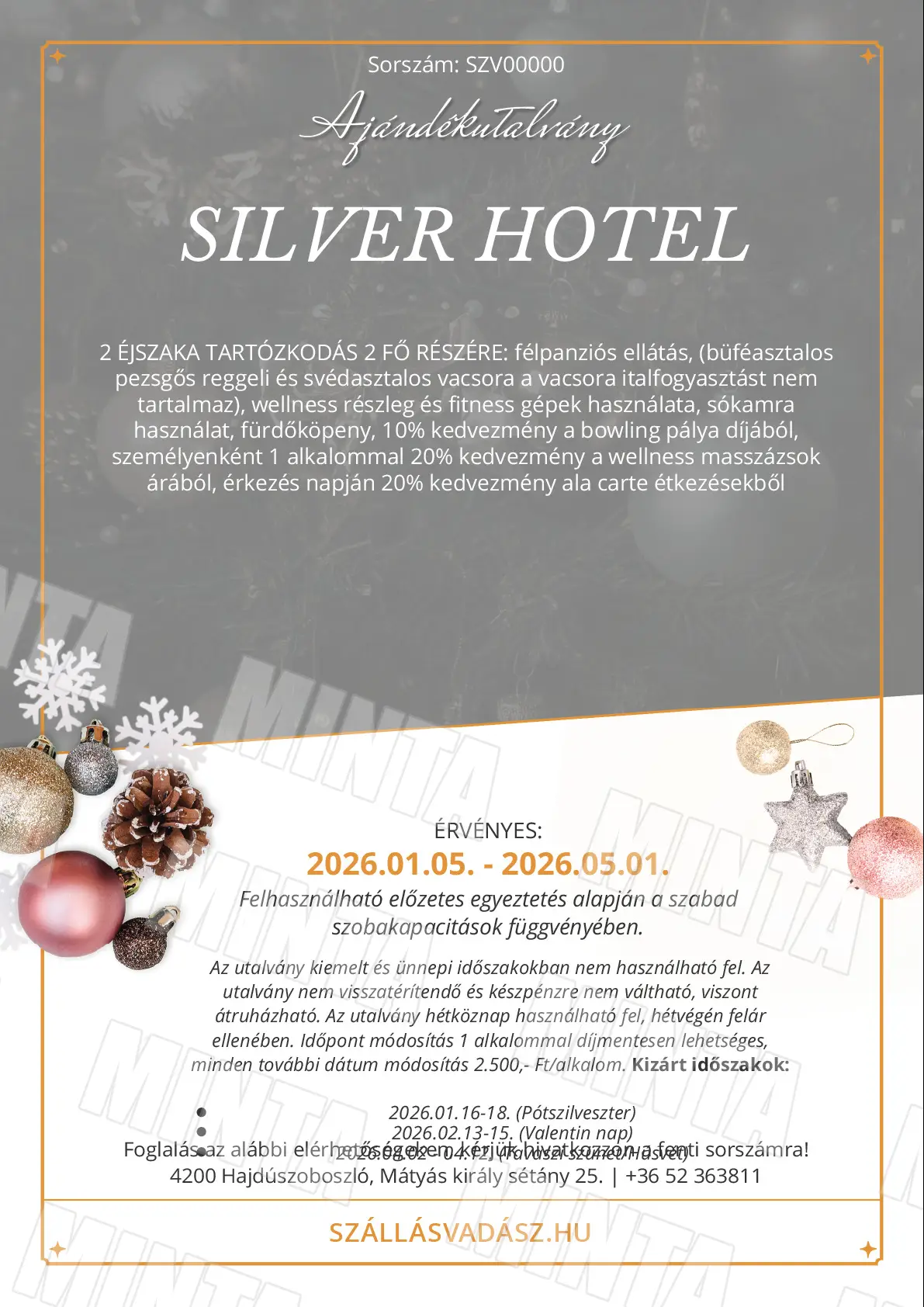 Az utalvány nem visszatérítendő és készpénzre nem váltható, viszont átruházható.