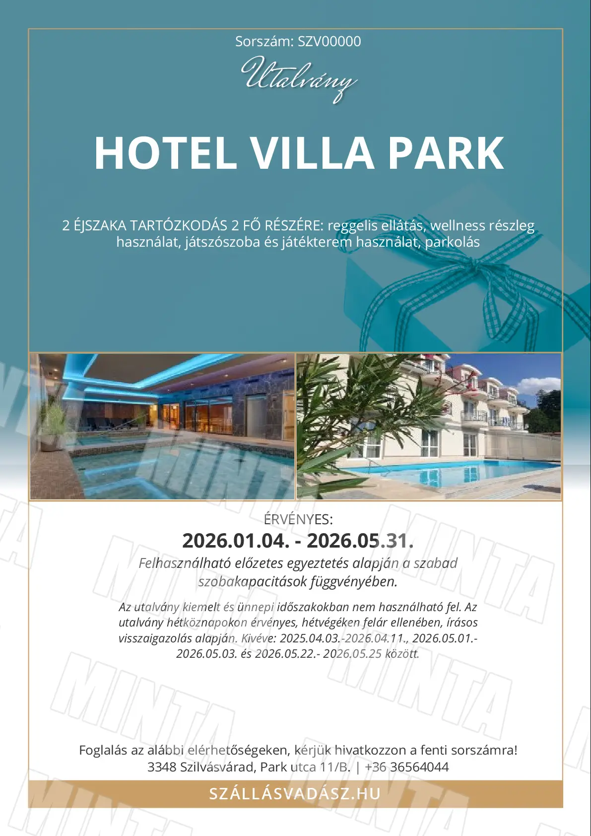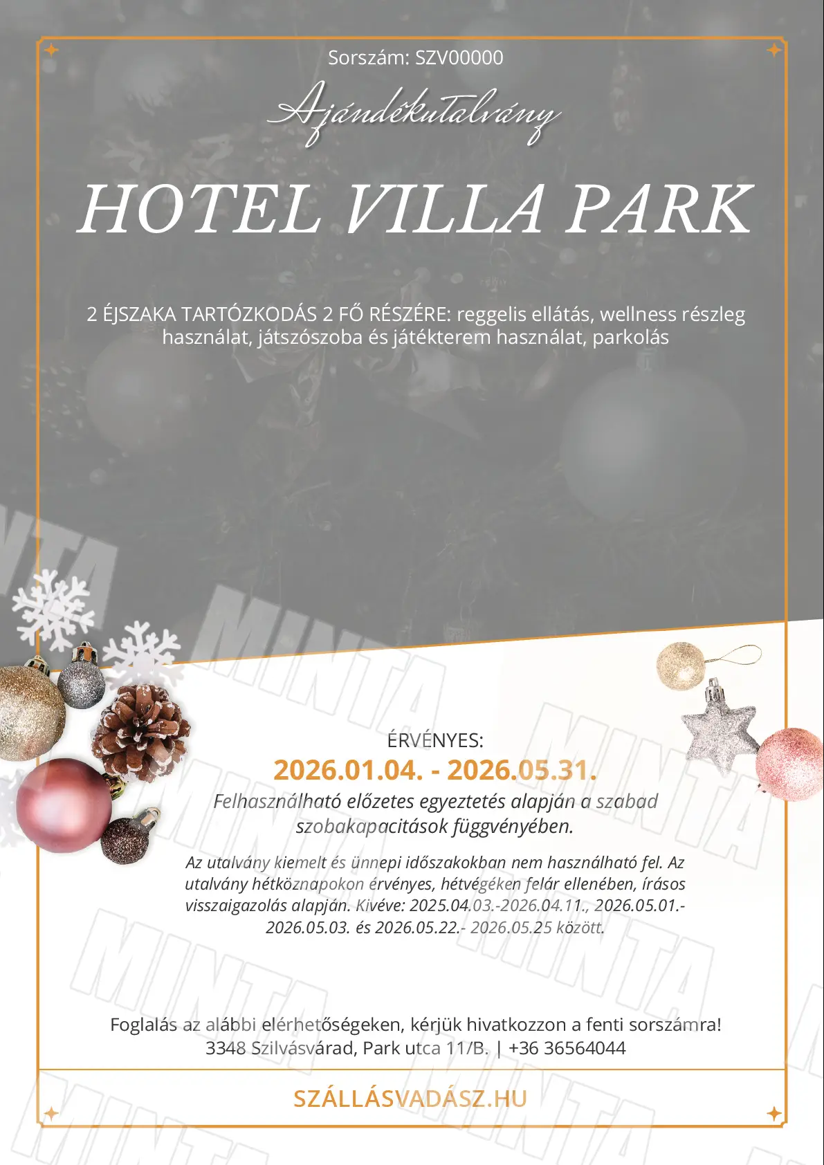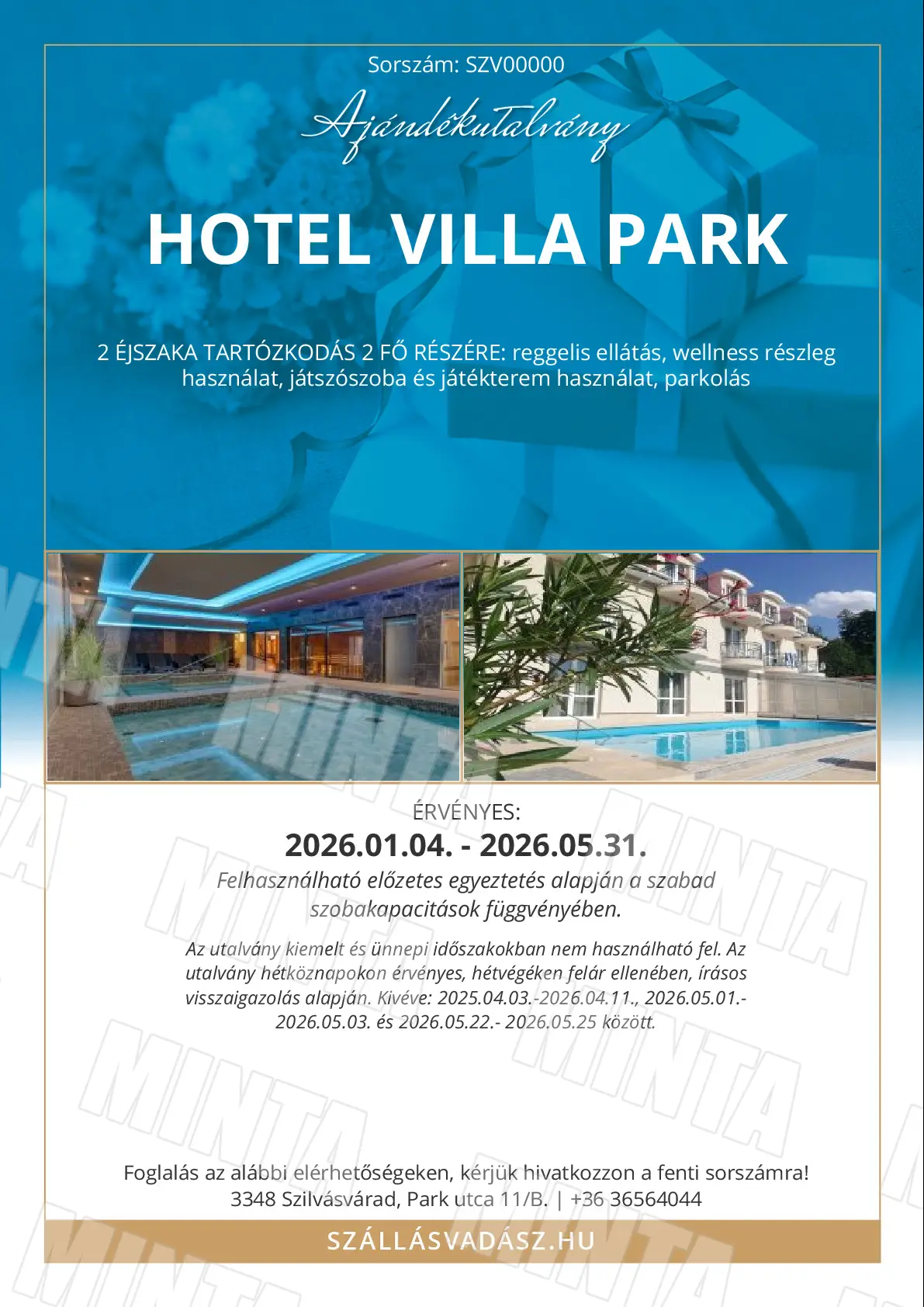 Az utalvány kiemelt és ünnepi időszakokban nem használható fel.